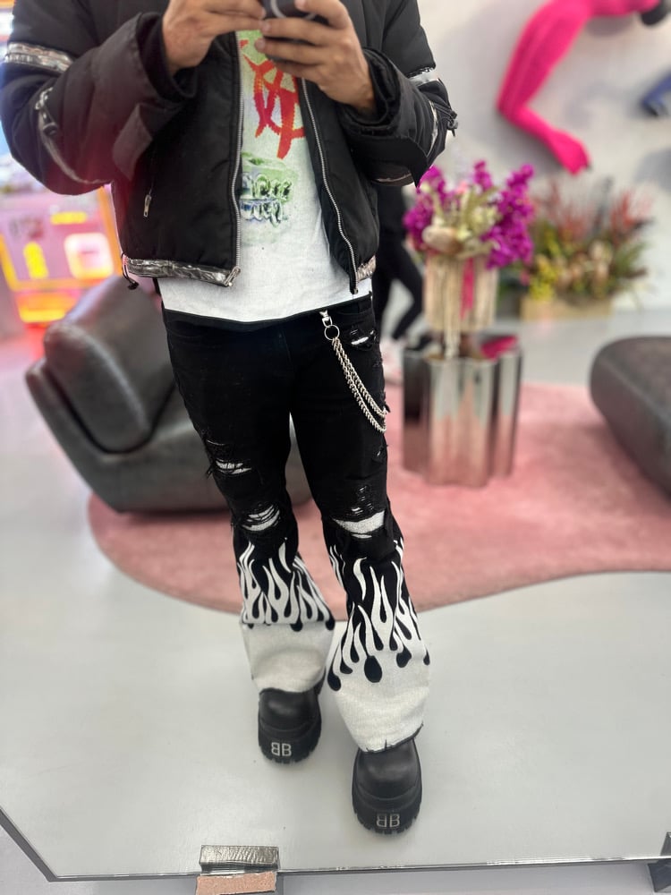 Silver Glitter Flame Denim + Denim