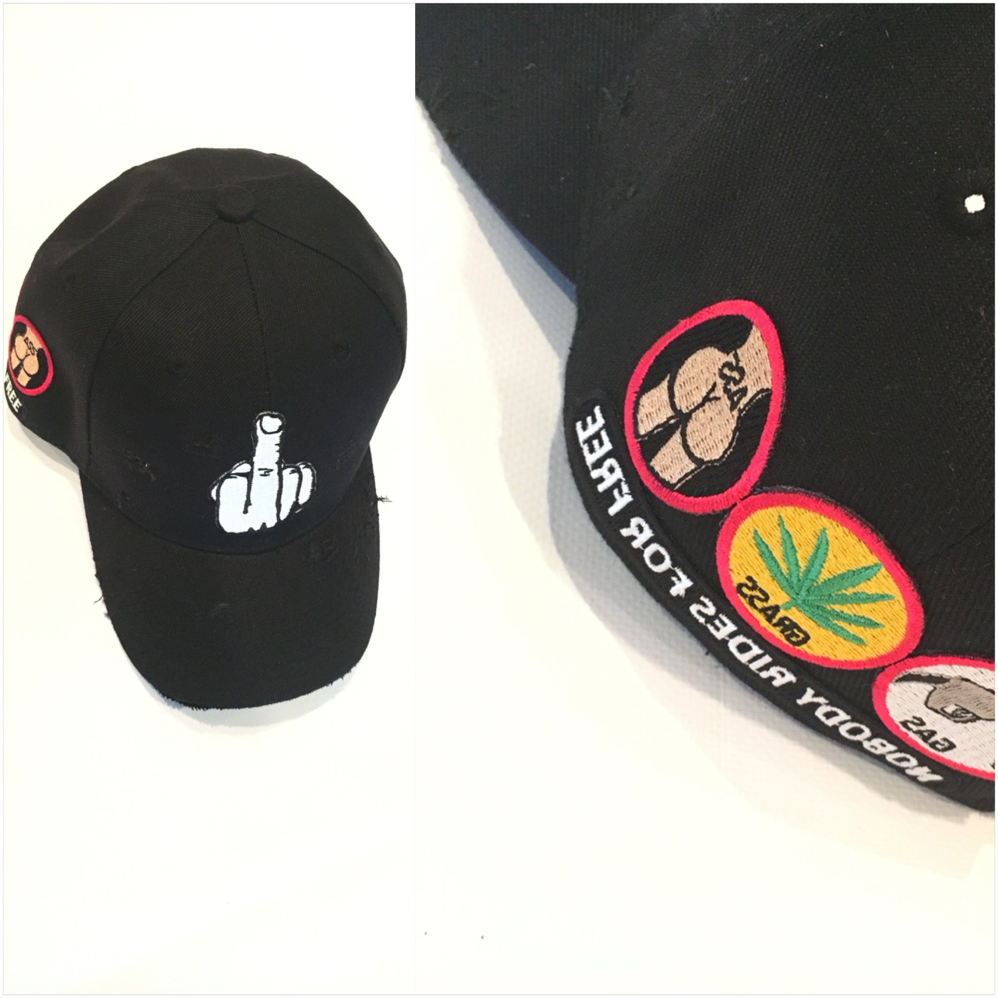 #NobodyRidesForFree Hand Distressed Caps